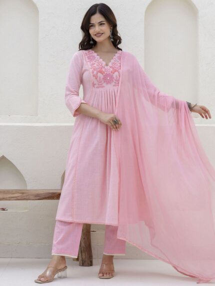 Women Cotton Kurta And Pant With Dupatta