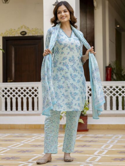 Women Cotton Kurta And Pant With Dupatta